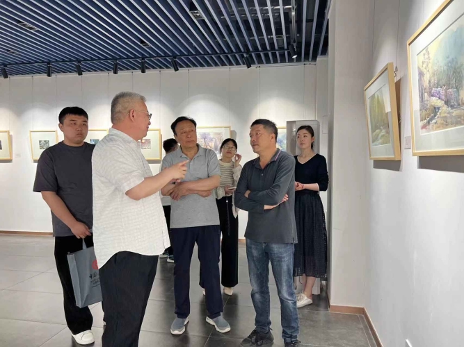 展览侧记——天津美术学院中国画系教授董克诚先生参观“山东水彩画院顾问展”