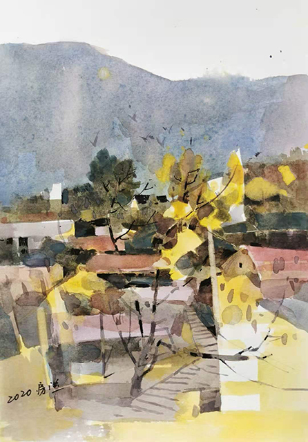 2012年水彩画[深秋]入选全国第十届水彩水粉画展.