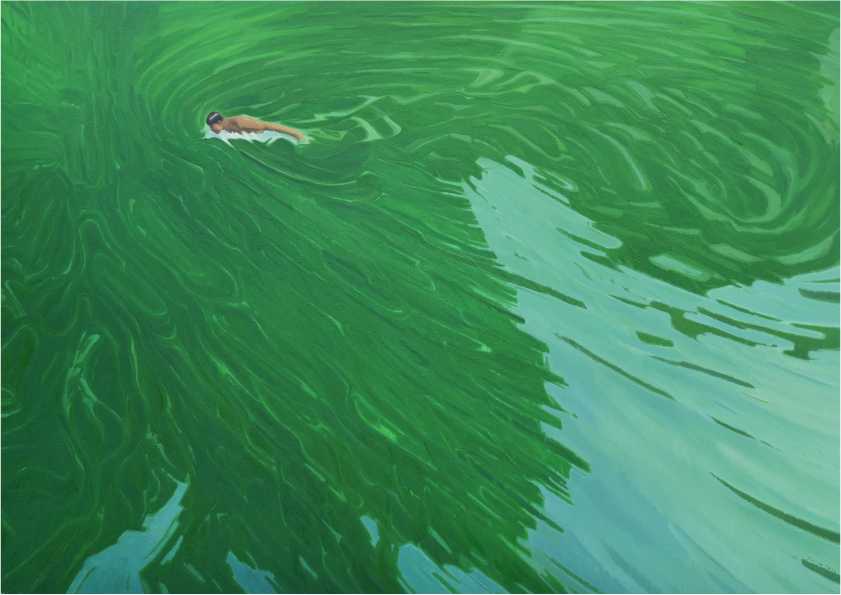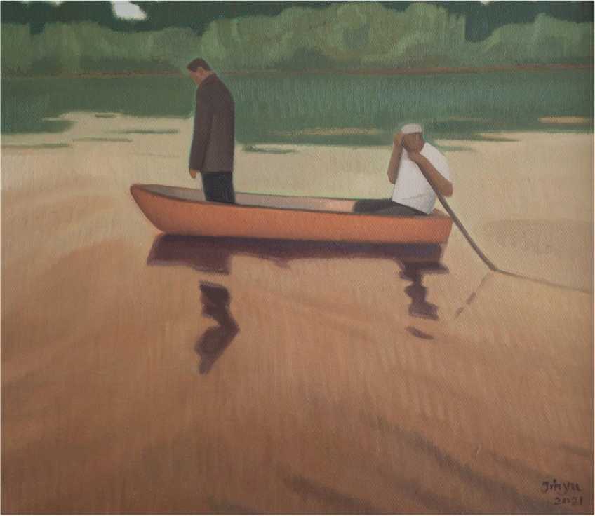 2018年作品《绿江白船》入选青衿计划北京正观美术观