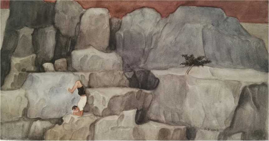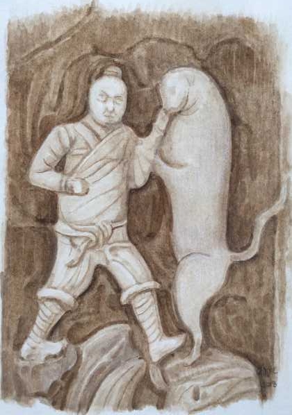 《巩县石刻之一》 20x30cm 纸本水彩 2018