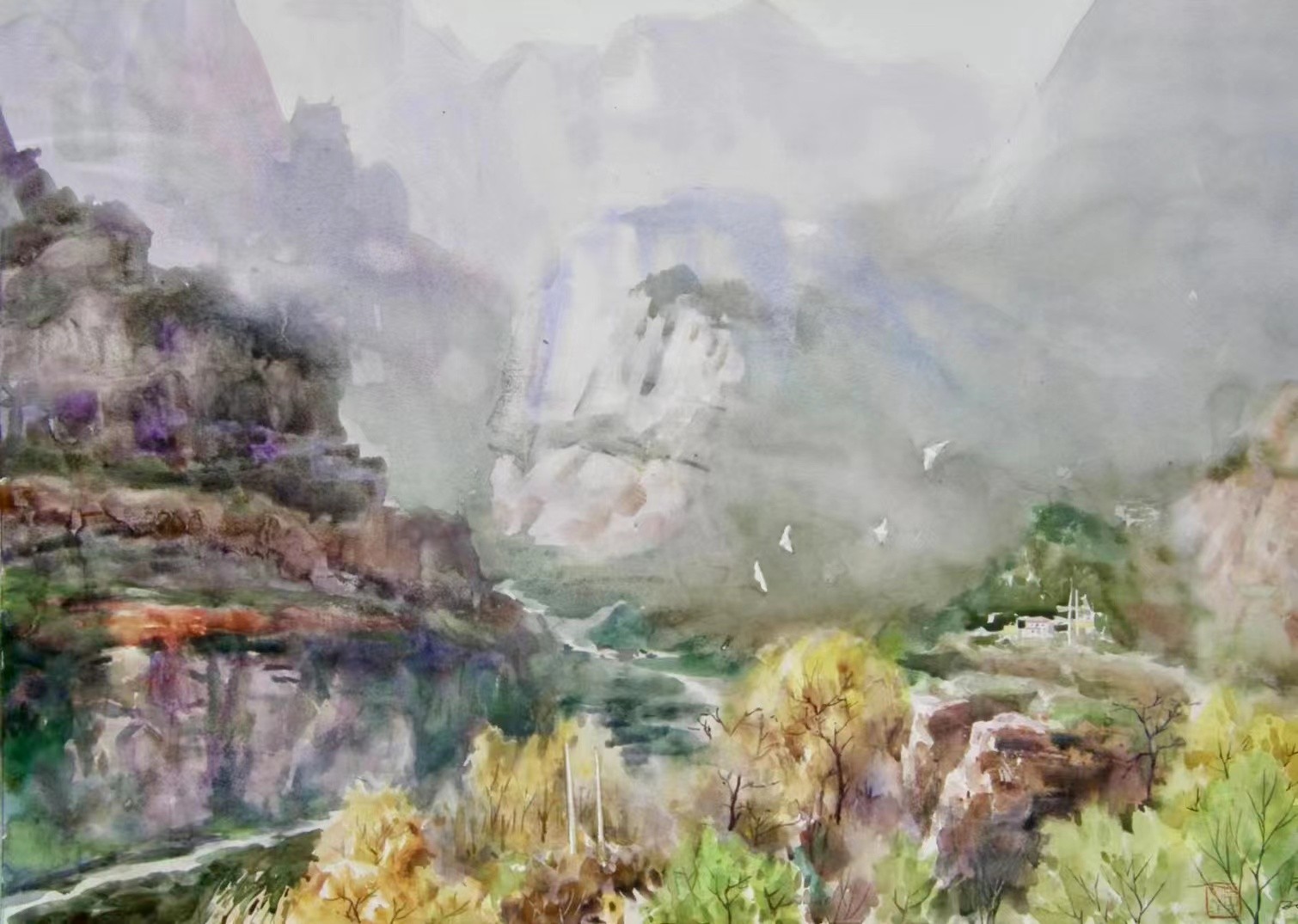 2013 水彩画《太行山》,入编《纪念济南市华夏文化促进会成立二十周年专集》