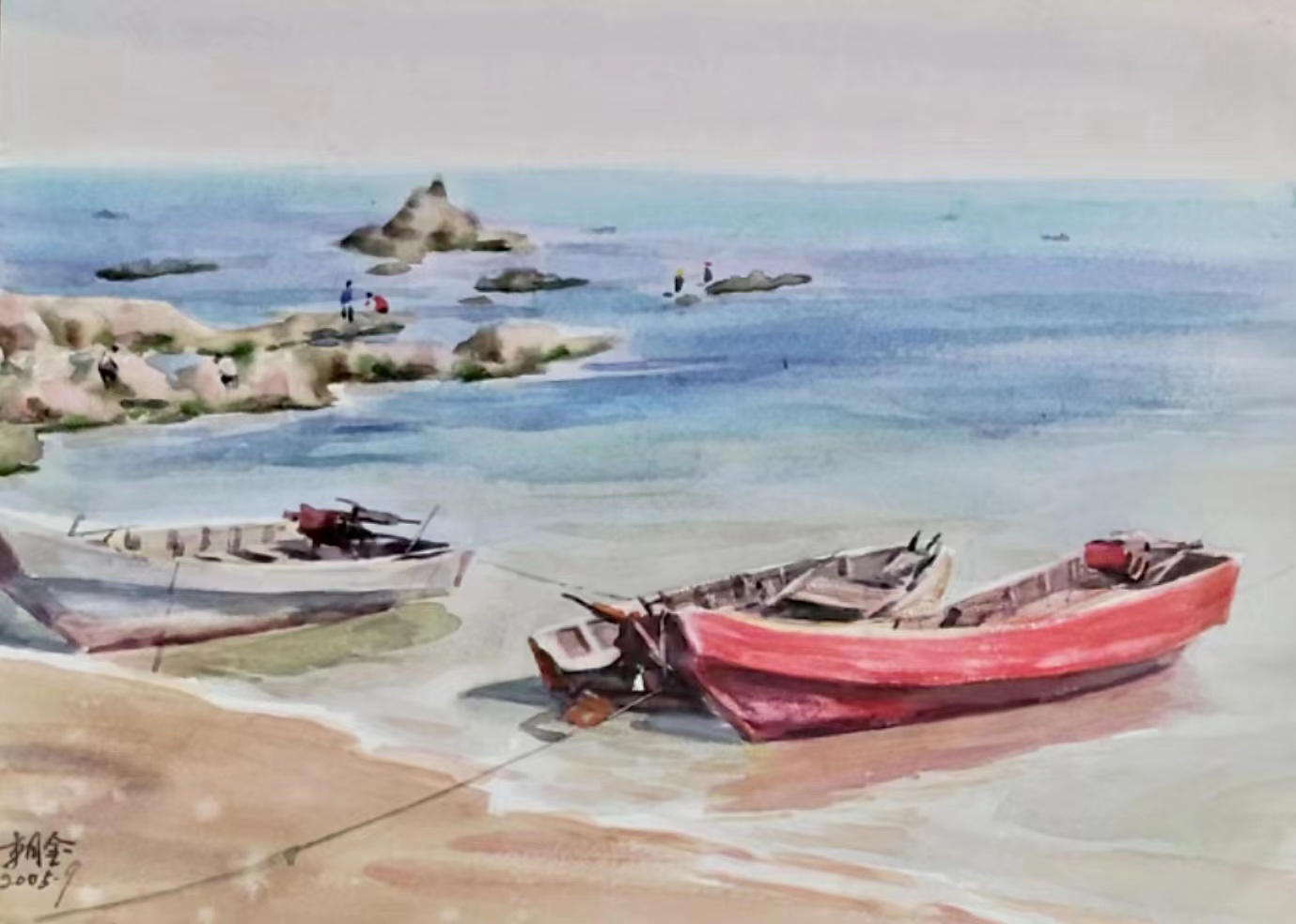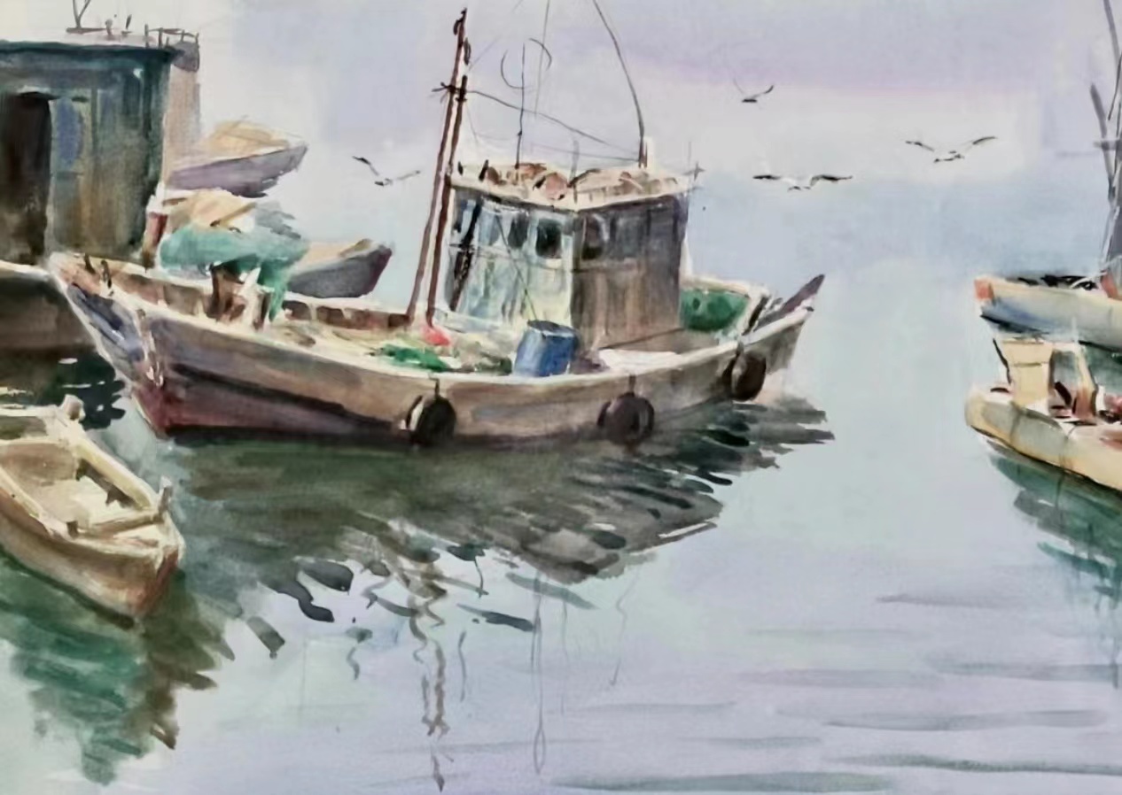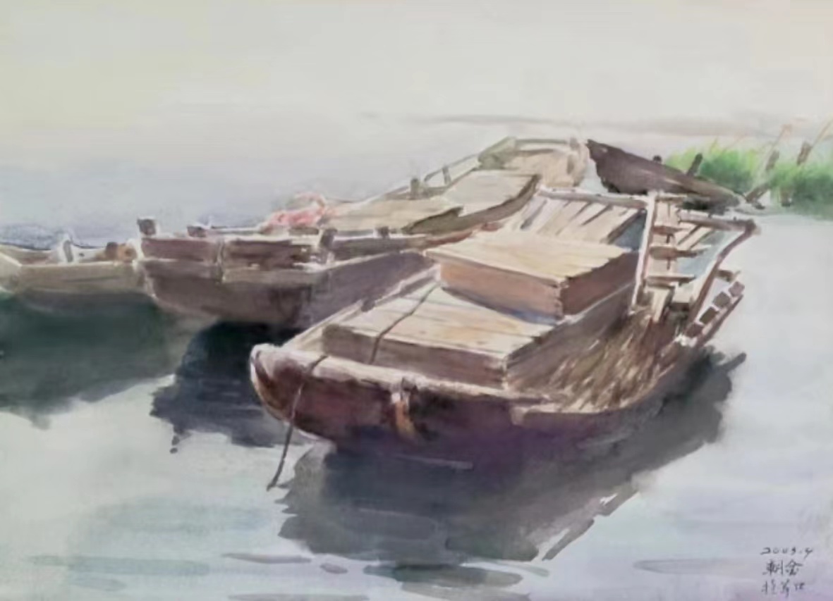 2003 水彩面《船》,入选“济南市首届职工书法绘画摄影展”,获一等奖
