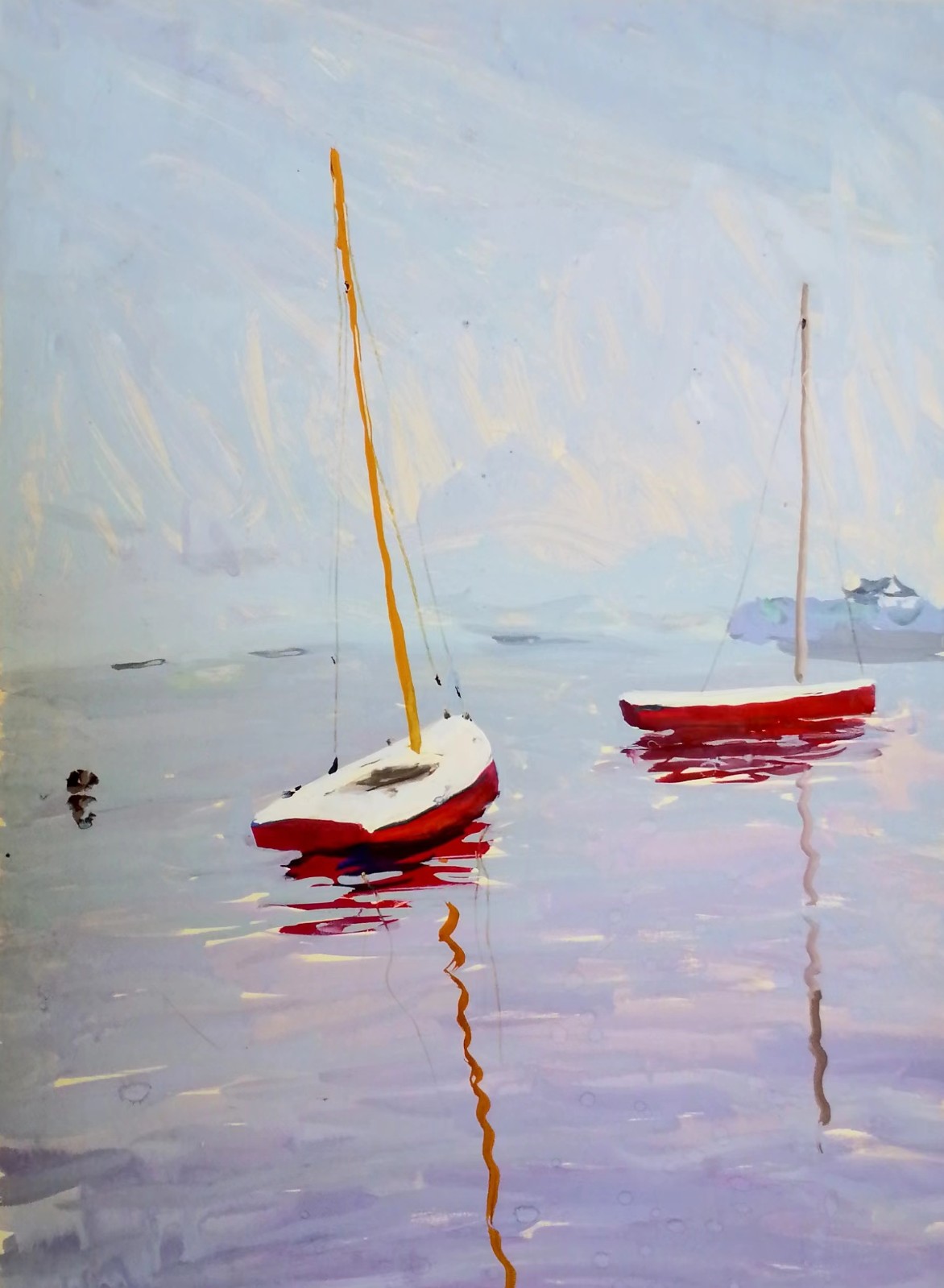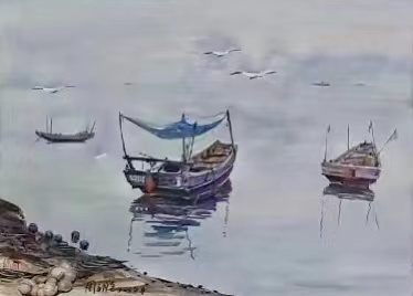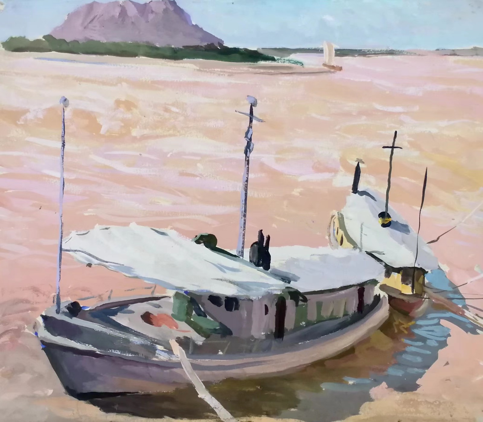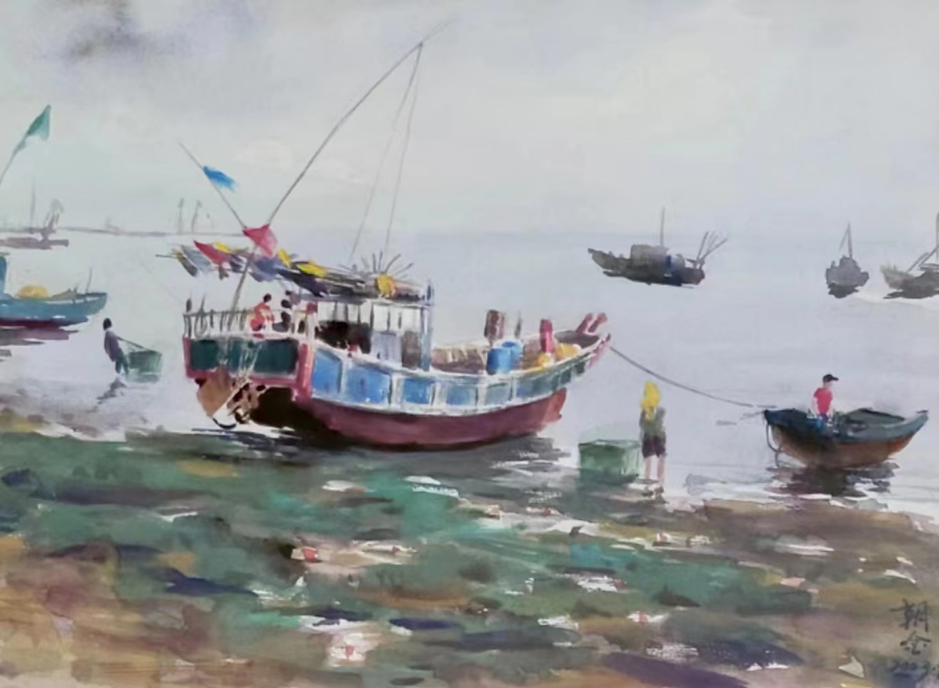 2003 水彩面《船》,入选“济南市首届职工书法绘画摄影展”,获一等奖