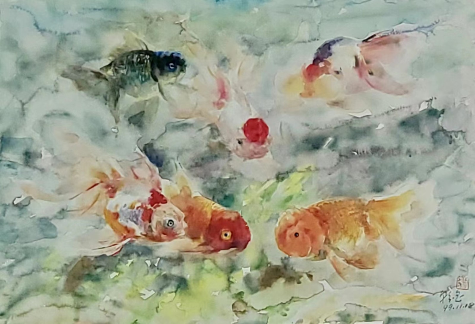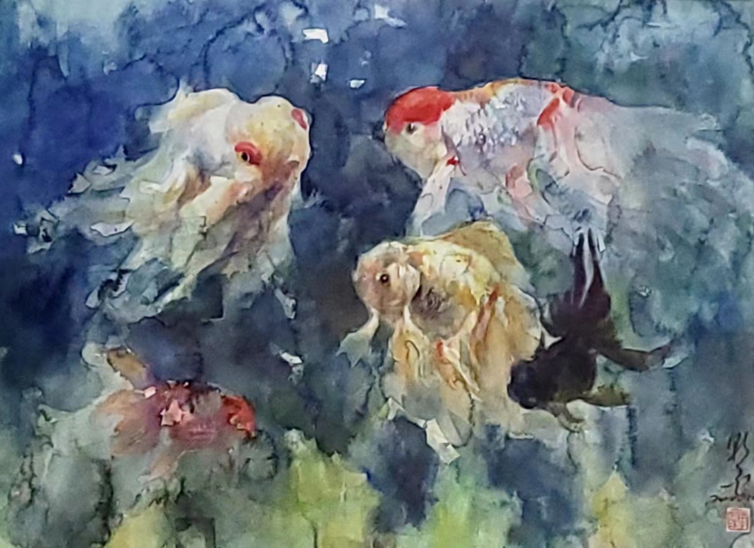 2014 水彩画《金鱼》等三幅,在《财富尚品》第 082号出版