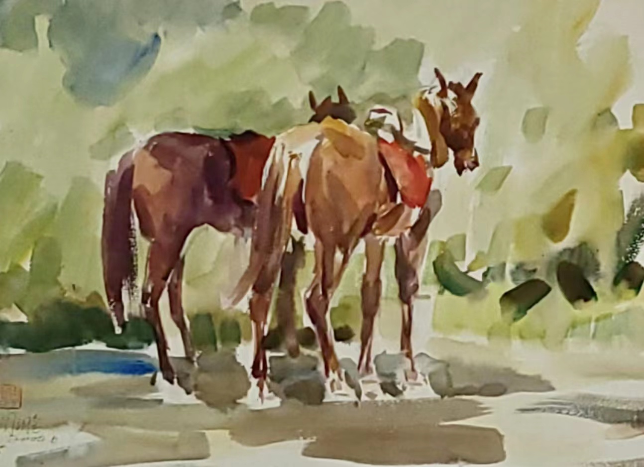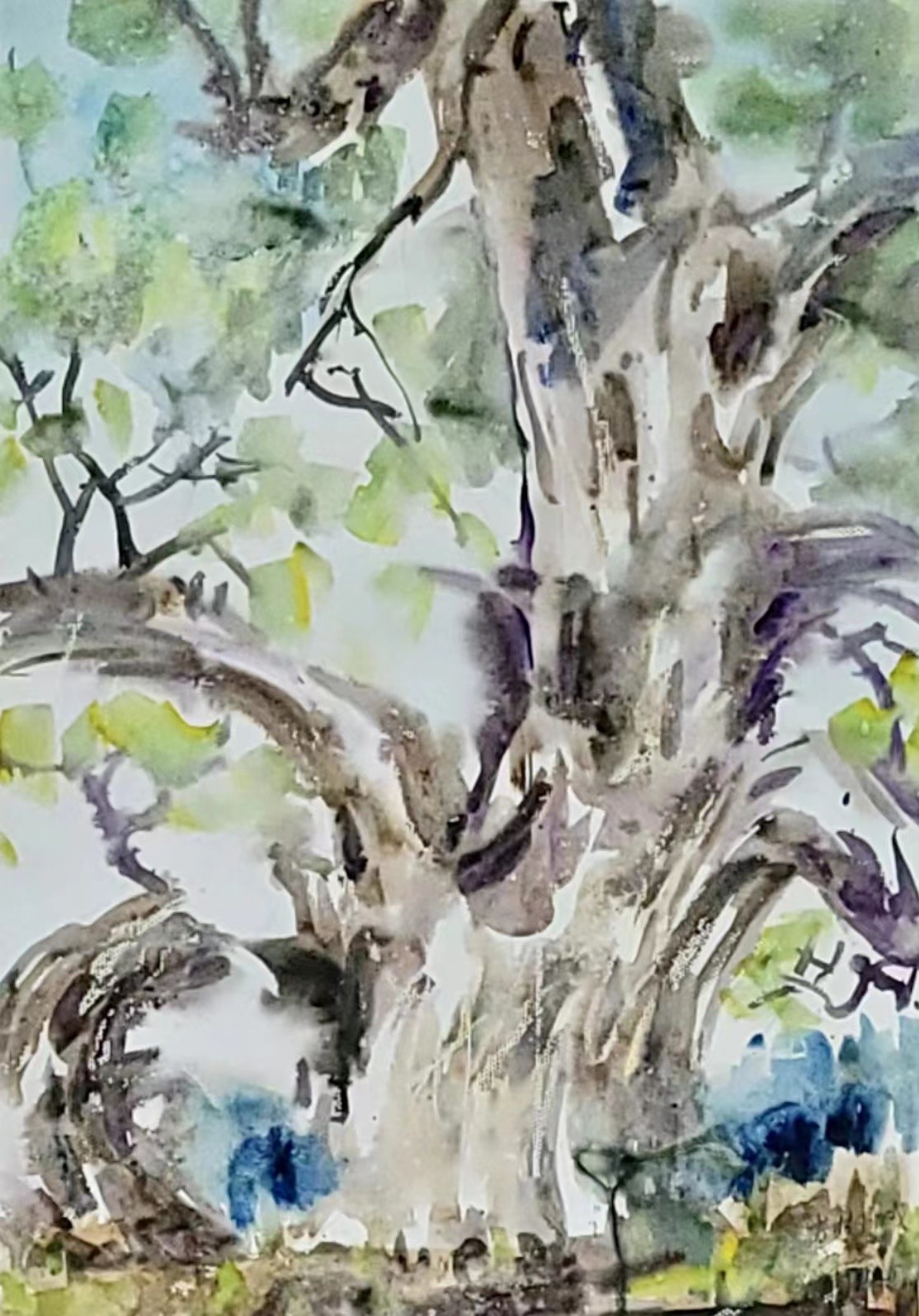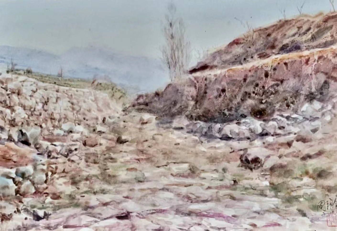 2005 水彩画《黄河边》,入选“2005中韩现代美术大展”