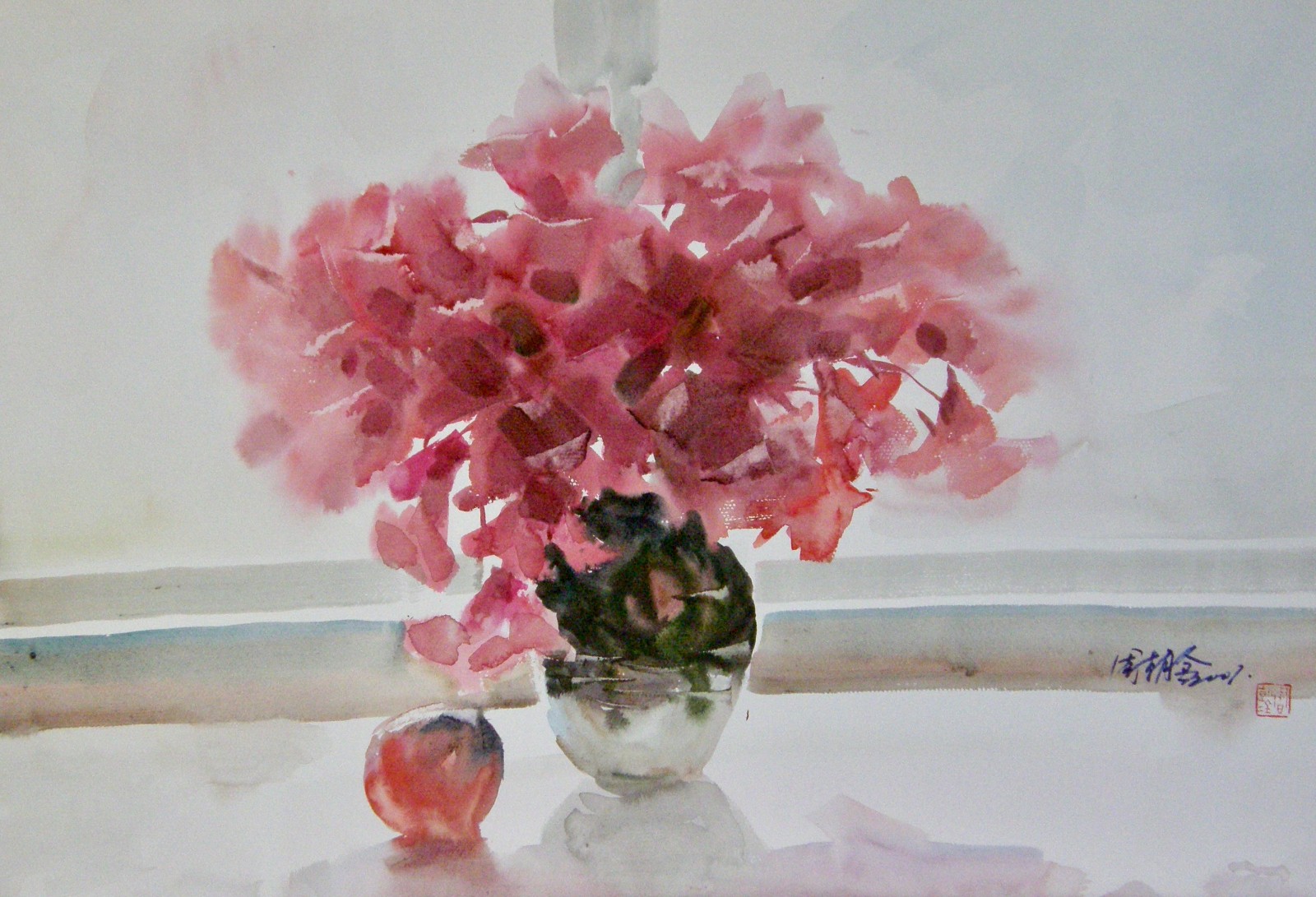 2011 水彩画 《红花》、入编《庆祝建党九十周年油画水彩画作品集》