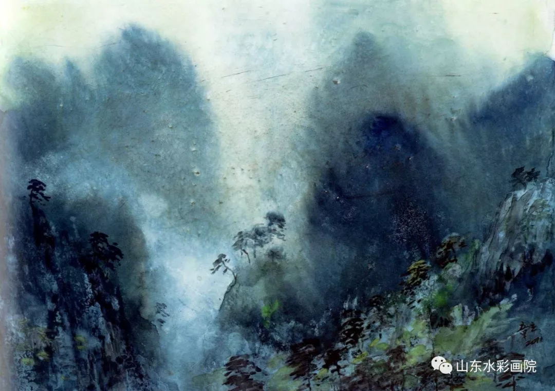 章立的水彩画水色淋漓、透明滋润,充分展现水彩画性“水”的特性;