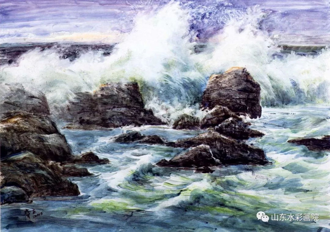 作品《海之歌》色调单纯而有力度,传达出水流急湍、飞溅的节奏,用笔精微,对色调的把握相当成功。